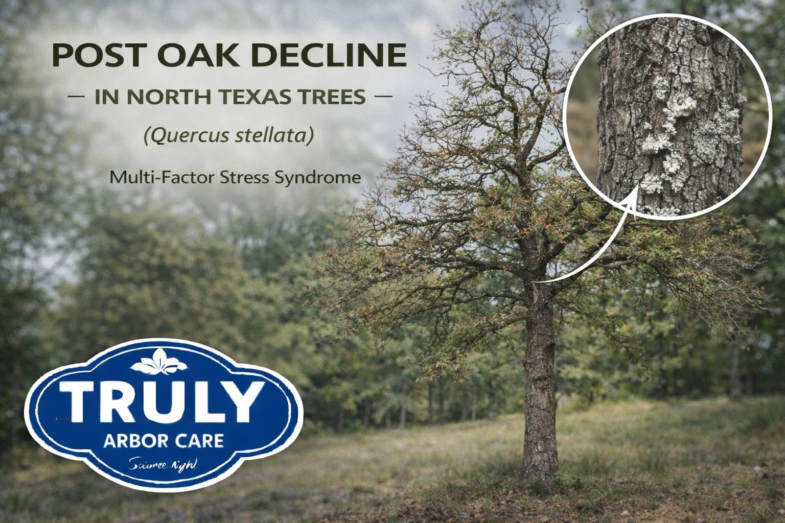 Post oak decline is a complex tree health condition affecting post oak trees throughout North Texas and the greater DFW Metroplex. Unlike diseases caused by a single pathogen, post oak decline is considered a stress-related syndrome involving multiple biological and environmental factors that gradually weaken the tree over time.